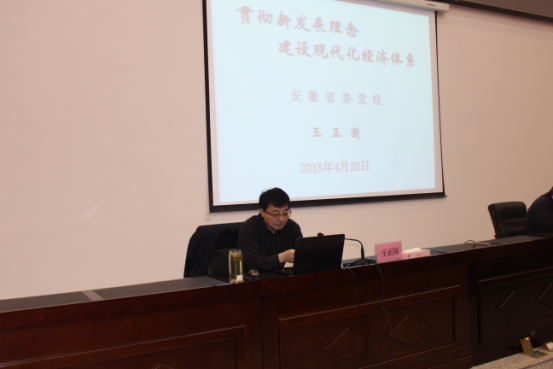 4月20日上午,省委党校副校长王正国应邀来我校作题为《贯彻新发展理念 建设现代化经济体系》的专题报告。副校长马跃主持报告会。市委党校第31期中青年干部培训班、第7期科级干部进修班的学员聆听了报告会。