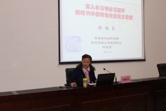 4月24日下午,省社科院马克思主义研究所所长杨根乔研究员应邀来我校作题为《深入学习领会习近平新时代中国特色社会主义思想》的专题报告。副校长马跃主持报告会。市委党校第43期县处级干部进修班、第31期中青年干部培训班的全体学员聆听了报告会。