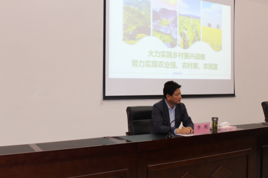 李明从新时代为什么要提出乡村振兴战略、怎样了解乡村振兴战略的核心要义、如何推动乡村振兴战略在我市落地生根等三个方面阐述了他对乡村振兴战略的思考,号召各级领导干部要在习近平新时代中国特色社会主义思想的指引下,以砥砺奋进的信念,只争朝夕的韧劲,勇求新进的行动,全力推动乡村振兴战略在我市全面实施,实现农业强、农村美、农民富。