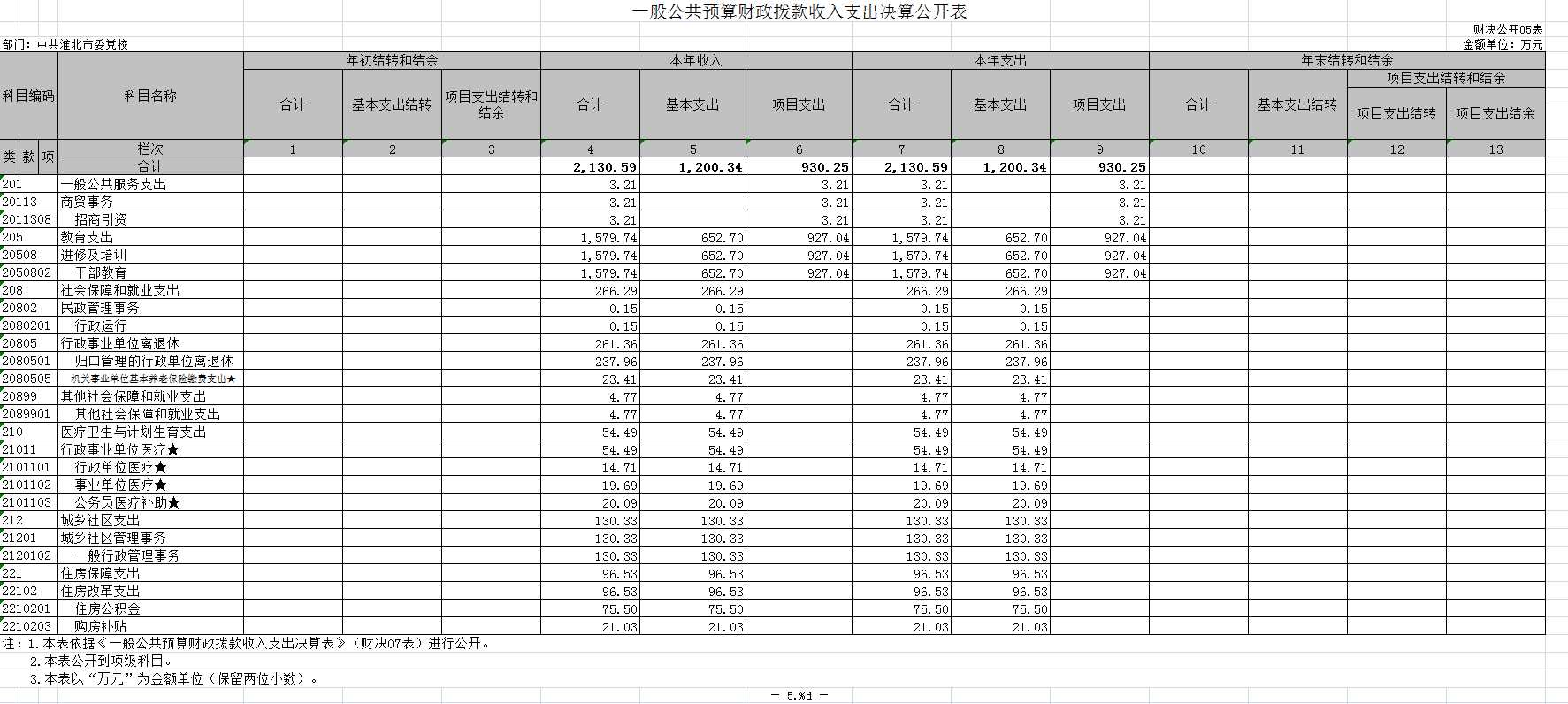 中共淮北市委党校2017年一般公共财政拨款收入支出决算公开表
