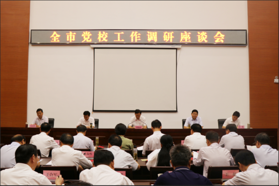 2018年9月8日上午,全市党校工作调研座谈会在市委党校一号报告厅召开。会议深入学习贯彻习近平新时代中国特色社会主义思想、党的十九大精神和习近平总书记关于党校工作的重要论述,全面贯彻落实中央、省委和市委对党校工作的重大决策部署,总结回顾2018年上半年工作,研究部署下一阶段工作。市委书记、市人大常委会主任黄晓武出席会议并讲话,市委副书记、市委党校校长李明主持会议。市委副书记、市长戴启远,市政协主席谌伟,市人大常委会常务副主任方宗泽,市委组织部、宣传部、统战部、财政局、人社局、编办等部门主要负责同志,市委党校、县委党校领导班子成员参加会议。