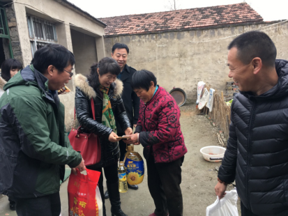 教辅支部支委在陈经明副校长的带领下,冒雨于12月5日上午,来到铁佛镇刘楼村走访慰问困难党员和扶贫干部张敬红同志,向他们送上问候与祝福。