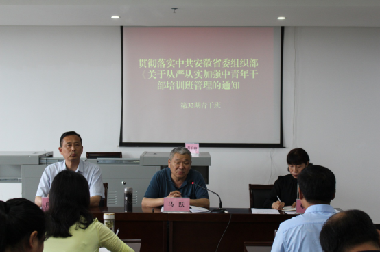 5月17日上午,市委党校召开会议,第32期中青年干部培训班学习传达了中共安徽省委组织部下发的《关于从严从实加强中青年干部培训班管理的通知》精神,党校副校长马跃主持会议并作重要讲话。