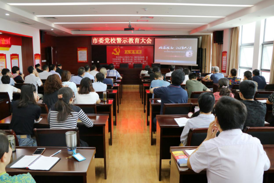 6月18日上午,市委党校召开专题警示教育大会,全校党员干部参加。