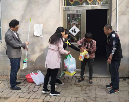 支部书记刘玲带领大家走访了夹河村贫困户,询问贫困户近来的生活情况、身体状况,向他们宣传最新扶贫政策。党员们为贫困户打扫了室内外卫生,清理了院内杂草、垃圾,并送去清洁卫生用品。