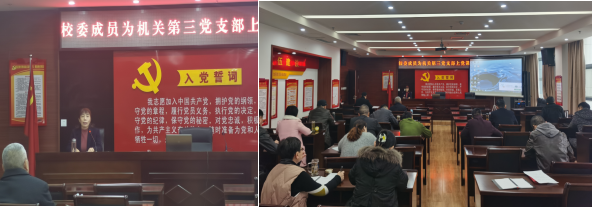 11月26日下午,市委党校副校长邓景丽结合工作实际,到所在的机关第三党支部讲授了一堂生动深刻的专题党课,以“如何贯彻落实好《中国共产党党校(行政学院)工作条例》”为题,深入阐述了新时代党校(行政学院)工作的重大意义,并要求机关第三党支部党员要从讲政治上,学习宣传习近平新时代中国特色社会主义思想上,提高工作质量上,从严要求自己上等四个方面下功夫,做表率,走在前列。