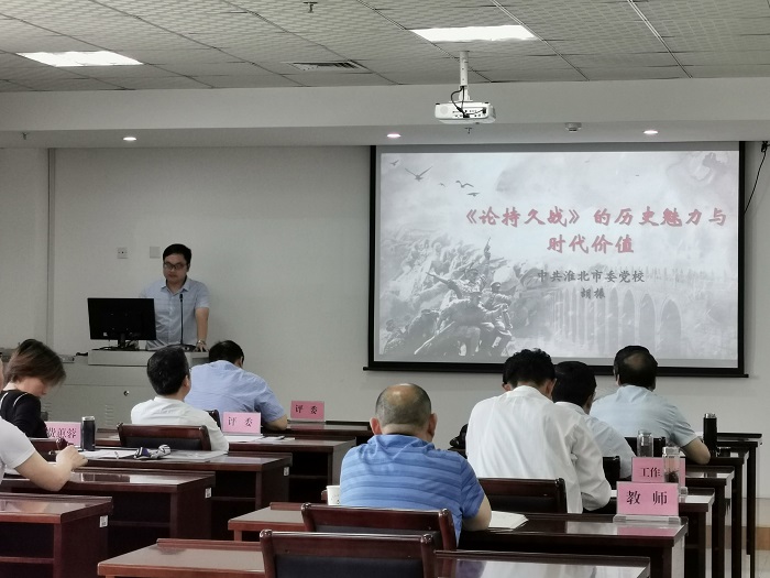 6月5日上午,我校2021年度教学比赛在综合楼505举行。经过精心准备和认真打磨,党史党建教研室推送的两个专题在比赛中斩获佳绩。其中,胡振老师的《<论持久战>的历史魅力与时代价值》获得第一名,张敏老师的《旗帜鲜明反对历史虚无主义》获得第三名。