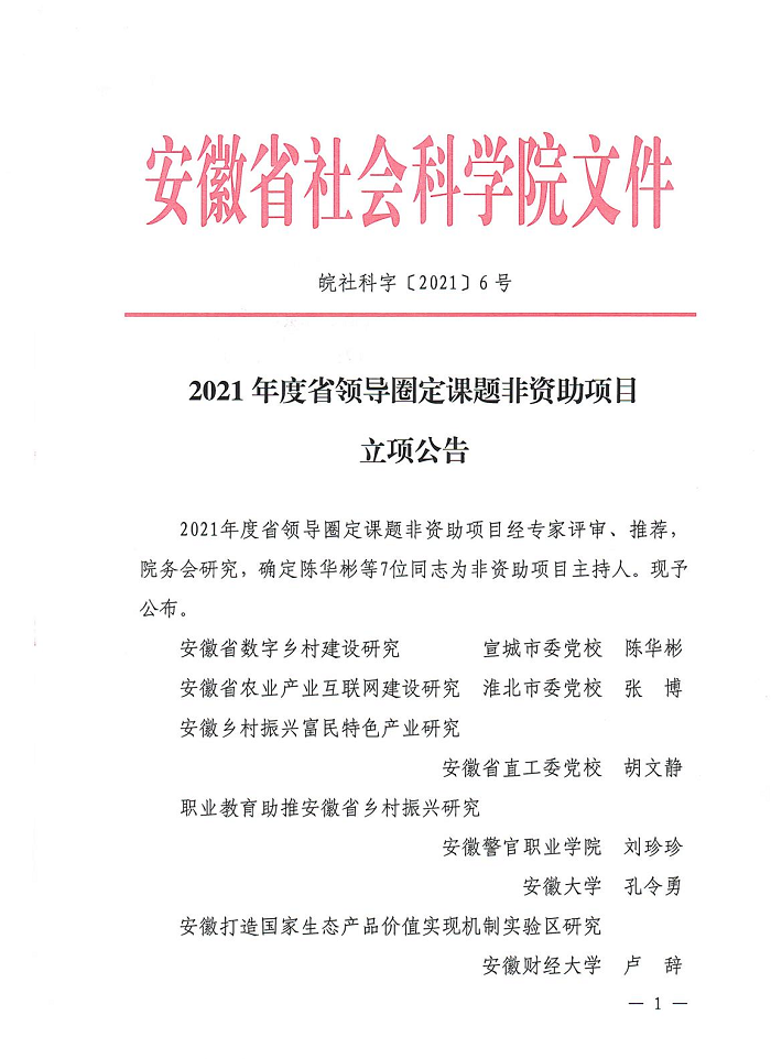 近日,安徽省社科院发布2021年度省领导圈定课题立项公告,共有6项课题入选,其中,由中共淮北市委党校(淮北行政学院)理论研究室副主任张博领衔的课题组申报的《安徽省农业产业互联网建设研究》课题成功入选,这也是有选题入选的全省三家市级党校之一。