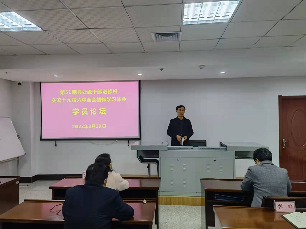日前,市委党校第51期县干班组织开展学员论坛,围绕党的十九届六中全会精神进行研讨交流。