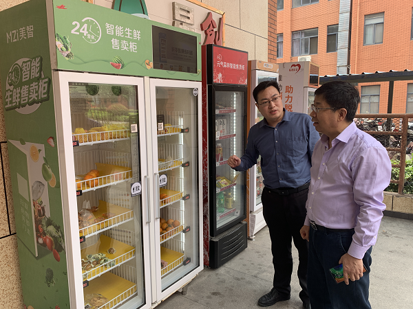 在星梦园新兴科技产业园,徐福信一行听取园区发展历程和运行模式介绍,并深入美的智能科技有限公司进行实地考察。徐福信详细了解现场展示的科技创新产品,饶有兴致地听取有关产品介绍,希望企业能够早日来淮投资,发挥自身优势,为淮北更高质量转型发展作出积极贡献。