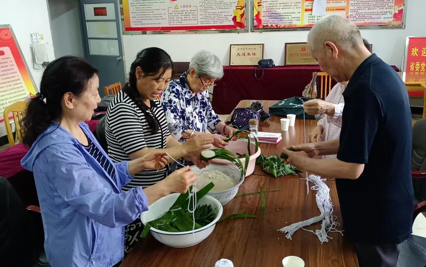 端午佳节,粽香飘溢,端午将至!6月2日,市委党校退休支部党员围绕“我们的节日·端午”主题,开展了包粽子活动。