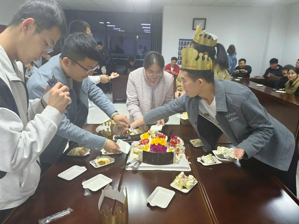晚上7点,生日会在欢声笑语中拉开了帷幕,本次活动由班委会成员主持,活动室其乐融融、喜气洋洋。点燃生日的蜡烛,同学们一起唱响生日歌,让寿星们在歌声中许下来年的愿望。最后,大家分享生日蛋糕,共享生日之乐,共度美好时光。