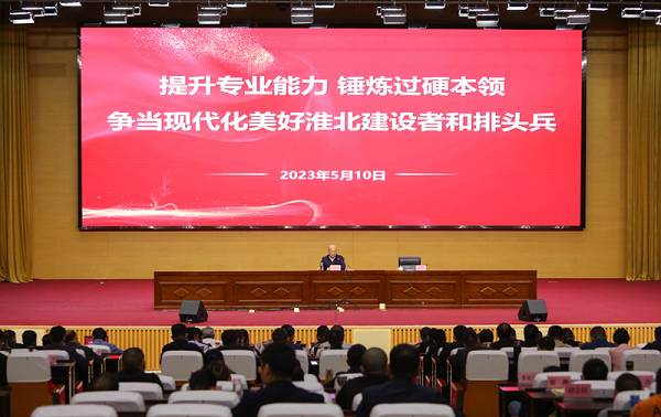 5月10日下午,市委副书记、市长汪华东在市委党校,以“提升专业能力 锤炼过硬本领 争当现代化美好淮北建设者和排头兵”为主题,为第54期县处级干部进修班和第17期科级干部进修班的全体学员、市政府办公室年轻干部、市委党校全体教职工上了一堂生动的党课,市委党校常务副校长徐福信主持报告会。