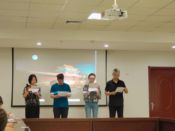 正常班会由班长主持,以第四小组的配乐诗朗诵《月光下的中国》拉开了班会的序幕,四名学员以饱满的热情,专业的朗诵赢得了全班同学阵阵掌声。之后进行了小游戏击鼓传花,现场热烈活泼,被选中的同学都表演了小节目,将班会推向了高潮。游戏的中间穿插了工商联及无党派同学关于凝心铸魂强根基团结奋进新征程的理解和认识,尤其是介绍了自身的工作,让同学们对统战工作和无党派有了更加全面的认识。最后,全班合唱《我和我的祖国》为班会画上了圆满的句号。