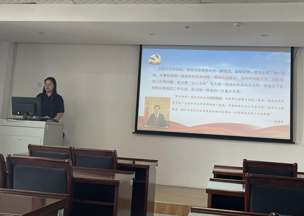 郭旭冉老师就教学专题《学习习近平总书记关于统一战线的重要论述》从时代背景、创新贡献等方面进行汇报讲解。试讲结束后,教研室内各位教师坚持集体备课原则,共同探讨,对此次试讲的新专题从框架结构、重点内容、主要观点、参考材料、课件制作等方面进行点评并提出具体完善建议。本次教研室试讲通过交流学习,共同进步,以期提高教学质量。