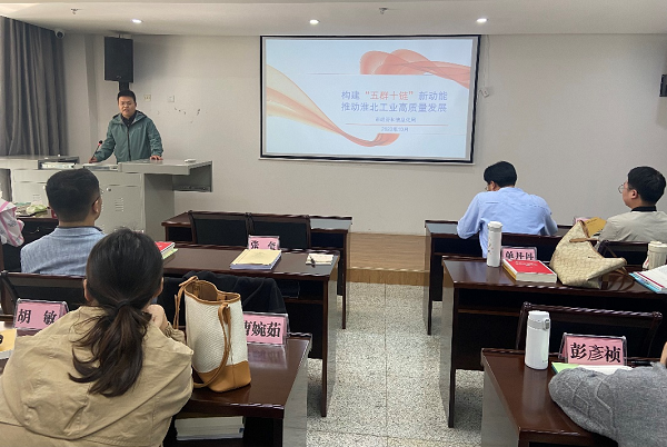 10月14日,2022级经济管理研究生班学员利用课前精彩分享时间,以《构建“五群十链”新动能 推动淮北工业高质量发展》为专题,向学员们详细介绍了我市在优化产业链发展的有利政策及具体举措。做大做强“五群十链”需要比拼实干,为优化“十链”布局,市委、市政府进一步明确发展目标、理清重点任务,通过实施八大行动22项工程,着力推动“五群十链”等制造业加速发展。力争通过5年努力,产业链现代化水平明显提升,“五群十链”现代产业格局基本形成,制造业营业收入实现翻番,奋力在全省实现争先进位。