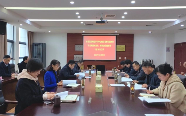 12月29日上午,市委党校召开理论学习中心组学习暨主题教育“牢记嘱托再出发、踔厉奋发建新功”专题研讨会议。邓景丽同志主持会议,校委成员、各处室负责人、四级调研员以上干部参加学习。
