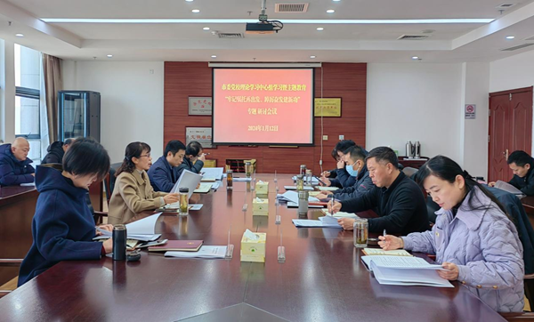 1月12日上午,市委党校召开理论学习中心组学习暨主题教育“牢记嘱托再出发、踔厉奋发建新功”专题研讨会议。邓景丽同志主持会议,校委成员、各处室负责人、四级调研员以上干部参加学习。