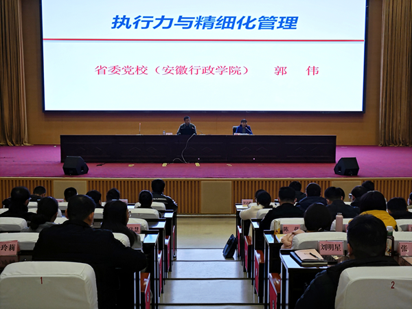 郭伟主任紧紧围绕主题,以习近平总书记对干部队伍建设的基本要求引入,分别从管理者要有坚定的执行力、精细化管理是执行的基础、检查监督是高效执行的法宝、执行中必须注意的问题等四个方面,聚焦做深做实“知”“会”“愿”,用深厚的理论和生动鲜活、贴近实际的事例,深入浅出地解读了执行力和精细化管理的丰富内涵和要素,为学员们带来一场具有较强指导性、针对性和可操作性的专题辅导报告。