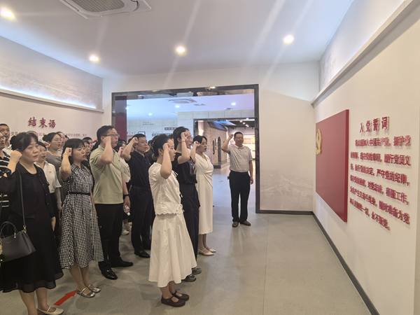 在淮海战役总前委旧址,大家认真聆听了淮海战役总前委旧址守护人--李华松老人讲述的淮海战役艰苦奋斗的历程,参观了总前委旧址陈列的珍贵的文物、文献资料、历史图片。在淮北党史教育馆,大家详细了解了淮北地区党组织成长和发展壮大的艰难历程、重要人物的活动足迹等,全面而真实地了解了淮北地方党组织发展的重大历史事件,让大家从党的光辉历史中汲取砥砺奋进的精神力量。随后,新党员面向党旗进行入党宣誓,其他党员重温入党誓词。
