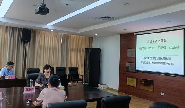 会议集中学习《习近平法治思想学习纲要》和《习近平著作选读》第二卷关于习近平法治思想部分章节,法学与管理教研室主任费蕙蓉为大家作了《习近平法治思想——新时代全面依法治国的根本遵循和行动指南》的专题讲座。参会人员结合学习联系思想和工作实际进行研讨发言。