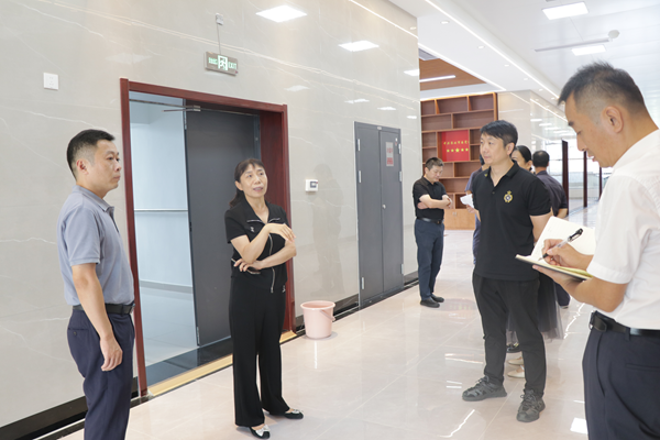 邓景丽一行实地察看教学楼和学员公寓楼现况,详细了解二期工程验收进展、配套物品采购、学员公寓清洁打扫等开学准备情况,并对发现的问题提出整改意见。