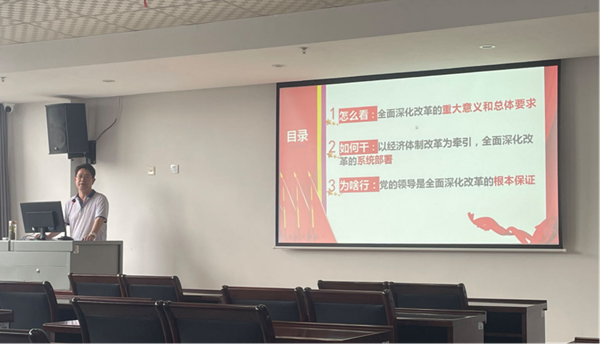 上午,张文宝主任分别围绕“怎么看”、“如何干”和“为啥行”三个方面,对新专题《进一步全面深化改革开辟中国式现代化广阔前景——党的二十届三中全会精神解读》的重点内容做出讲解。下午,姚传娟老师就《绘就构建支持全面创新体制机制新蓝图——党的二十届三中全会精神》新专题的重大意义、内在要求和重点任务三个方面进行介绍。