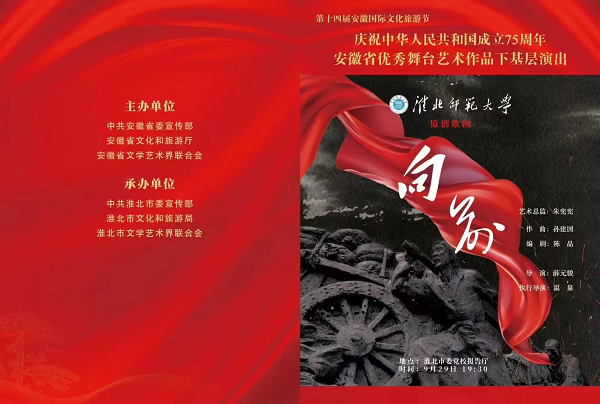把讲台搬上舞台,演绎特殊“党课”。9月29日晚,由安徽省教育厅主办、淮北师范大学承办,淮北师范大学音乐学院师生倾情演绎的原创话剧《向前》于在我校报告厅上演,机关第二党支部全体教职工参加。