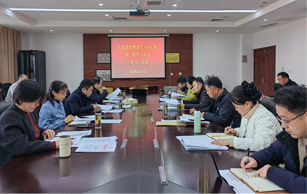 1月17日下午,市委党校召开理论学习中心组2025年第1次学习研讨(扩大)会议。邓景丽同志主持会议,校委委员、各处室负责人、四级调研员以上干部参加学习研讨会。