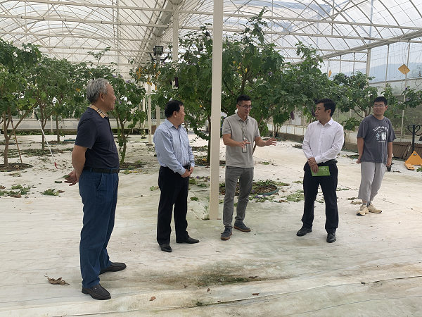 在深圳华大万物科技有限公司,招商组一行实地考察公司农业基地,听取华大万物公司负责人关于多宝茄树、多年生稻种植方法、生长习性等情况介绍。副校长王锋表示回淮后将积极与农业相关部门对接,力争把新农业、新技术引进淮北。